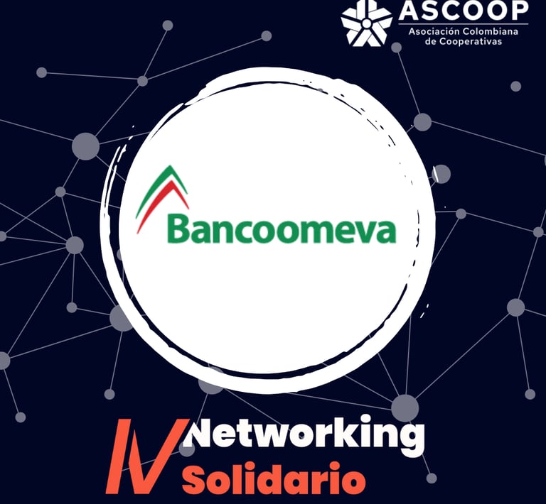 En Bancoomeva creemos en la fuerza de la unión y la experiencia como motores del crecimiento del sector solidario. Nos dedicamos a ofrecer soluciones estratégicas en ahorro, inversión, financiación, recaudo y pago, adaptadas para impulsar el fortalecimiento de cada organización. Somos un banco solidario, comprometido con el desarrollo y el progreso de las cooperativas y empresas del país. Nos enorgullece estar aquí en el Networking Solidario de Ascoop, para construir alianzas que beneficien al sector y proyecten un futuro de crecimiento compartido.